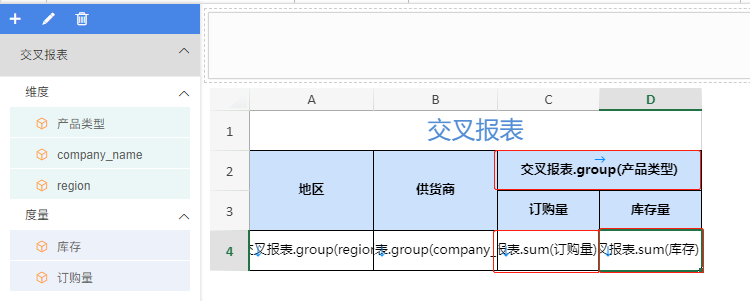 将维度和度量依次拖入到对应的单元格内,如图所示;